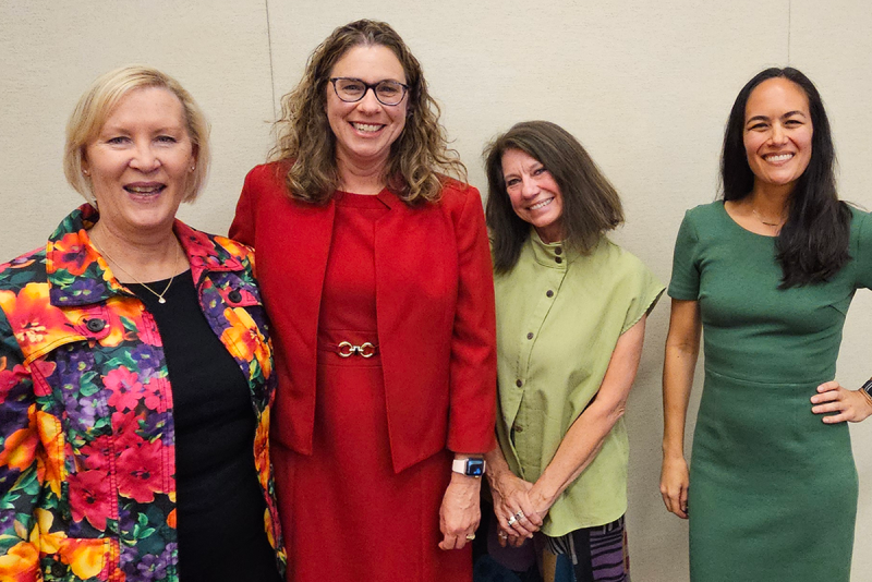(l-r): Sturm College of Law Professor of the Practice of Law Debra Austin, J.D., Ph.D.; Christine Harbison, Deputy District Attorney for the 17th Judicial District Attorney’s Office; Nathalie Martin, University of New Mexico; Associate Dean for Faculty Scholarship & Provost Professor Nancy Leong, Sturm College of Law.